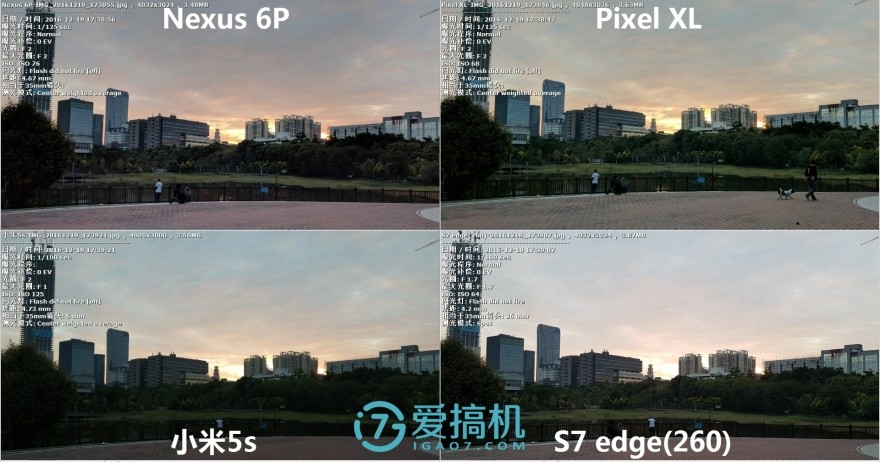 PS:所有对焦点都是正中间,点击图片可以查看大图。小米5s和S7 edge都是自动模式,6P和Pixel XL白天样张从默认和HDR+模式中选择更优的作为代表,灯光和弱光场景皆使用HDR+样张。